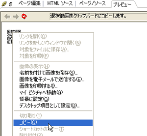 Wordなど他のソフトへ貼り付けたいときは、ページ編集画面から「プレビュー」に表示して、QRコードを右クリックしてからコピーするのが簡単です。